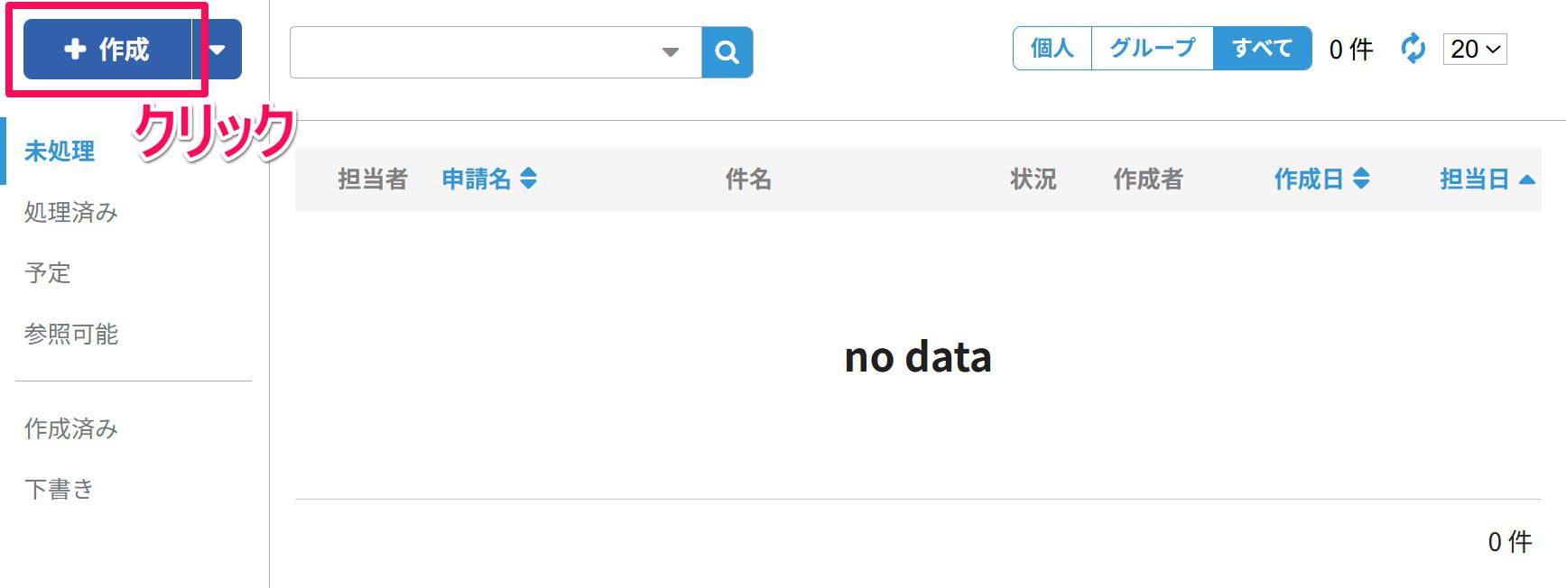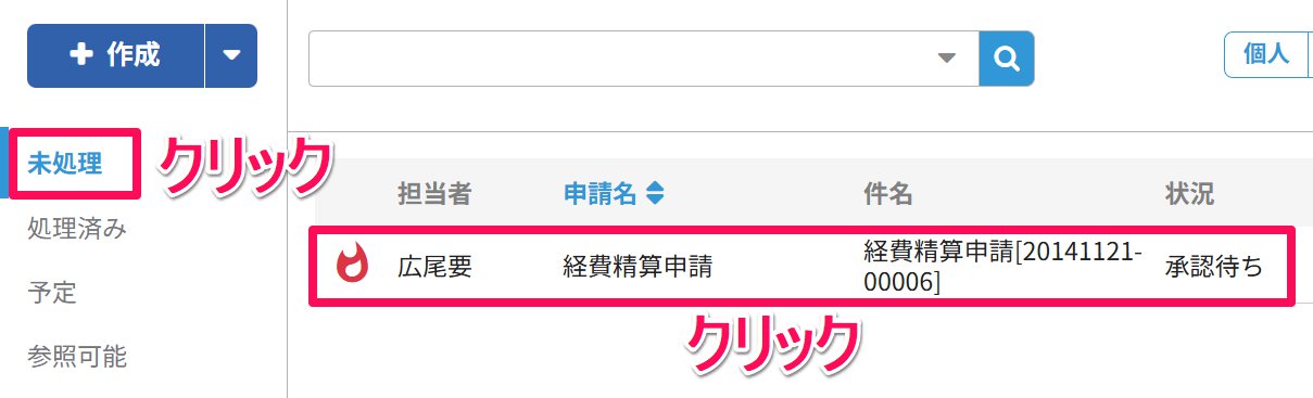 一覧画面の「未処理」をクリックし、自分に割り当てられたタスクを確認します。タスク一覧から対象のタスクをクリックし内容を表示します。