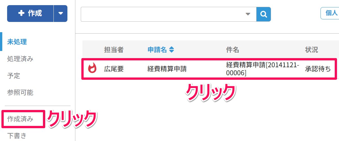 一覧画面で「申請済み」をクリックし、取りやめたいタスクデータをクリックします。